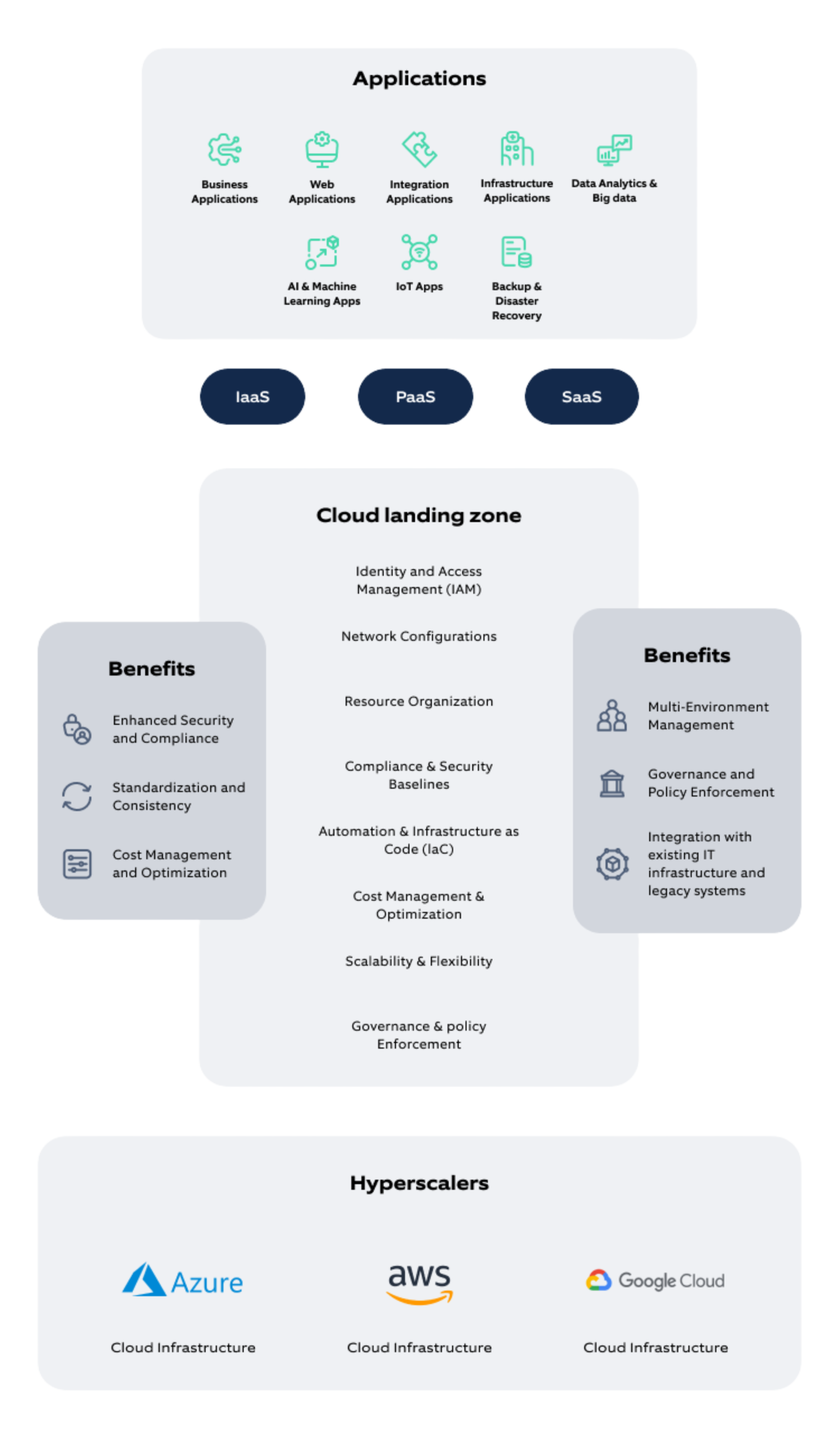 A Cloud Landing Zone is a secure, scalable, and compliant cloud environment that includes: